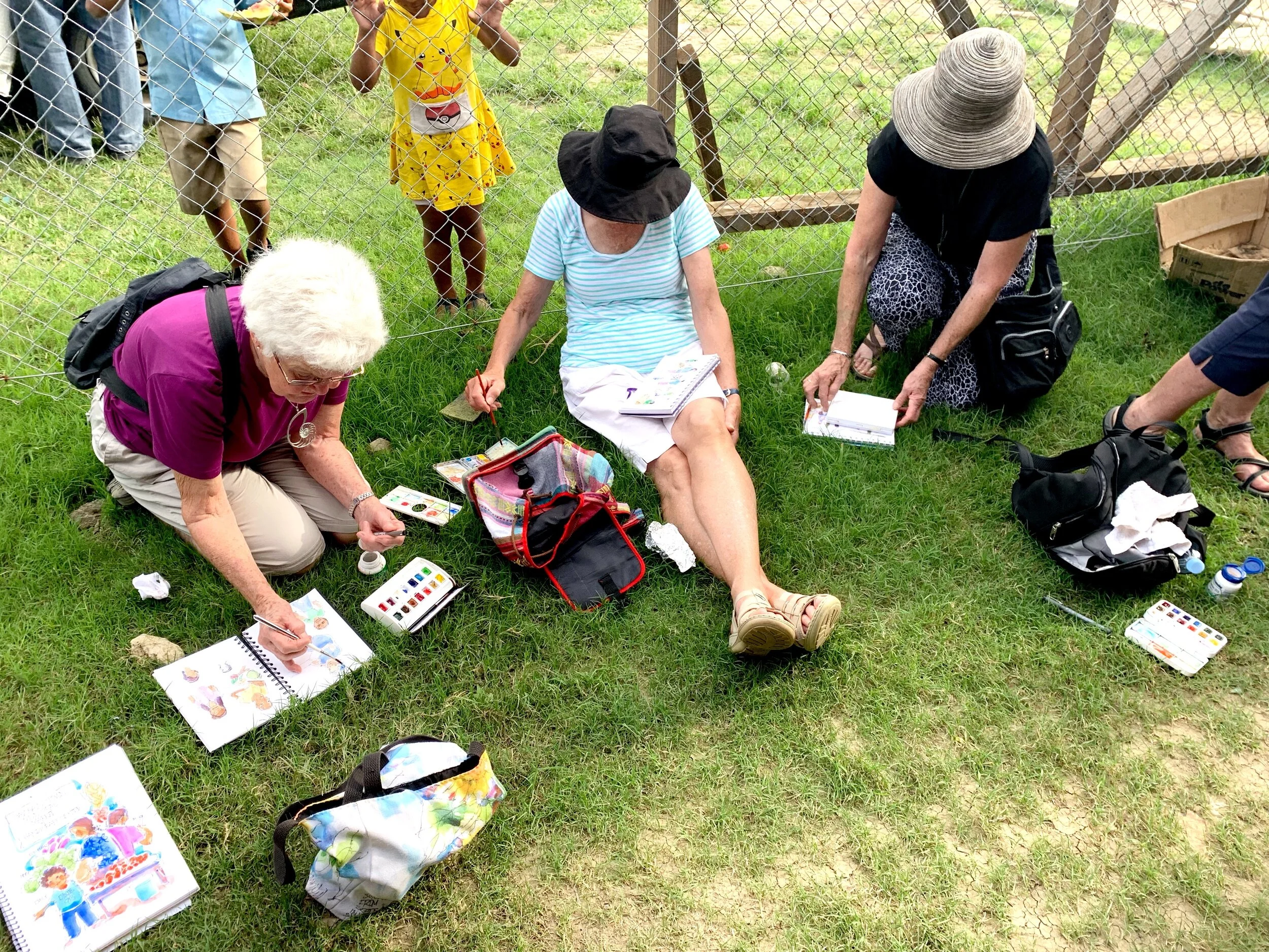 Every day we’d start with a delicious breakfast and be ready for the start of our morning sketch class. The yoga shala - up all those steps was ideal. Our Studio in the sky. I like to arrange my studio in a way where everyone can see and hear what’s being said. Of course I’m happy to wander around to be sure.