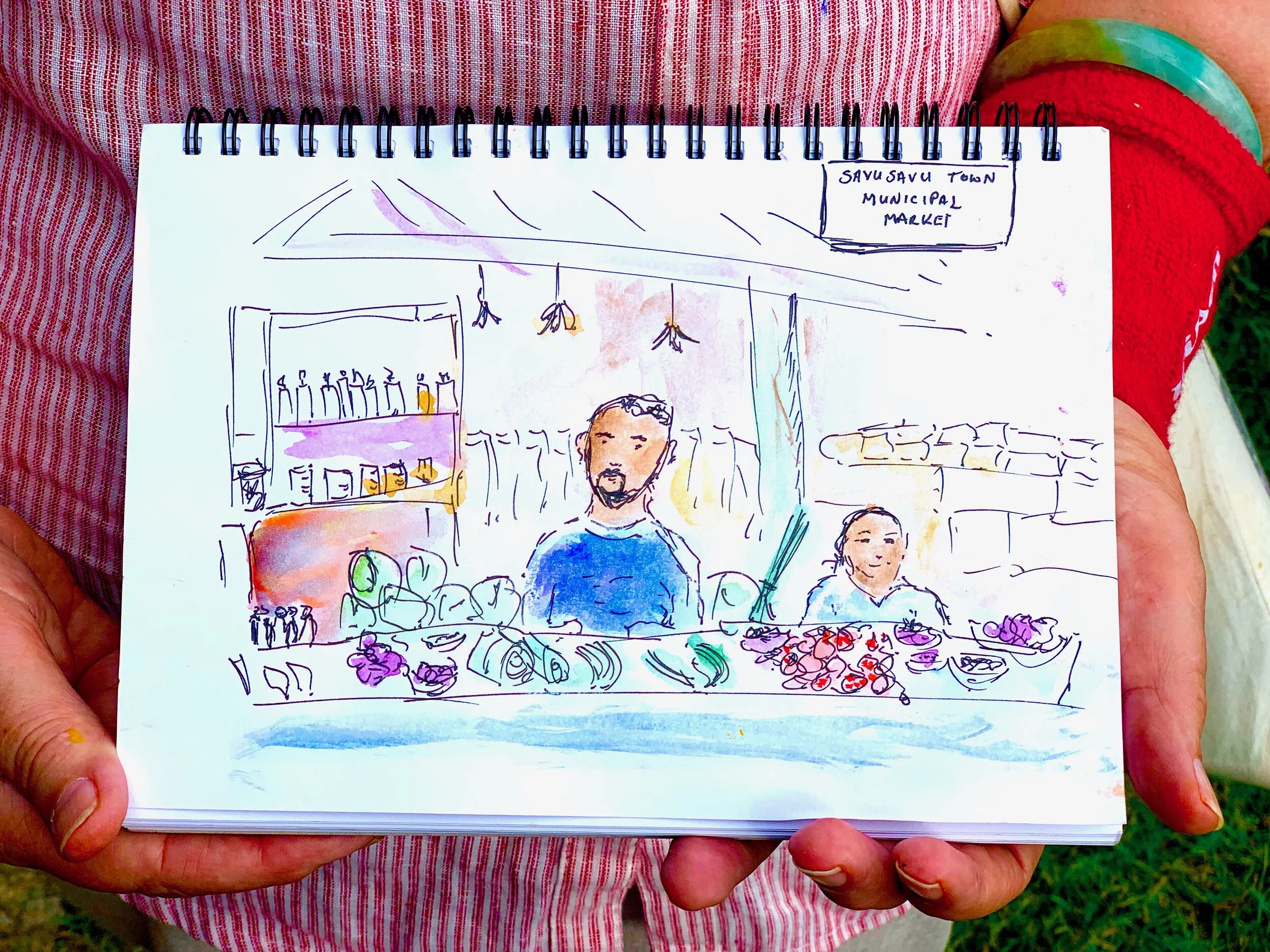 You’ll see below a wonderful collection of sketch moments and outings. We all loved every bit of it and round the big dinner table at night we’d chat about what we’d seen and how we admired the family culture of Fiji and the ‘no stress’ approach to life. We all came away with hopes of keeping those feelings as long as possible.