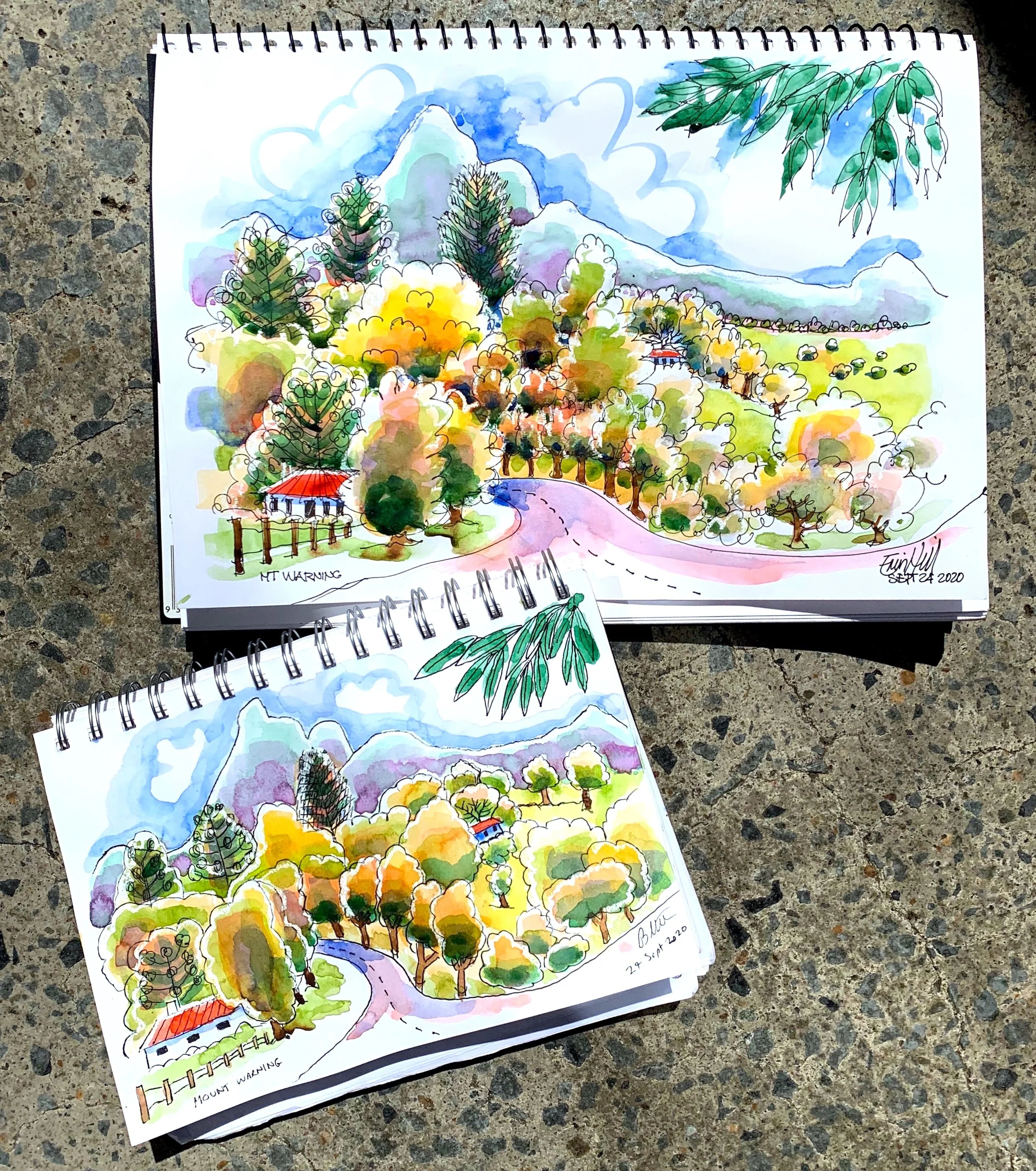 You’ll also see a line and watercolour version and how we made the greens distinct from one another with light and dark colour.