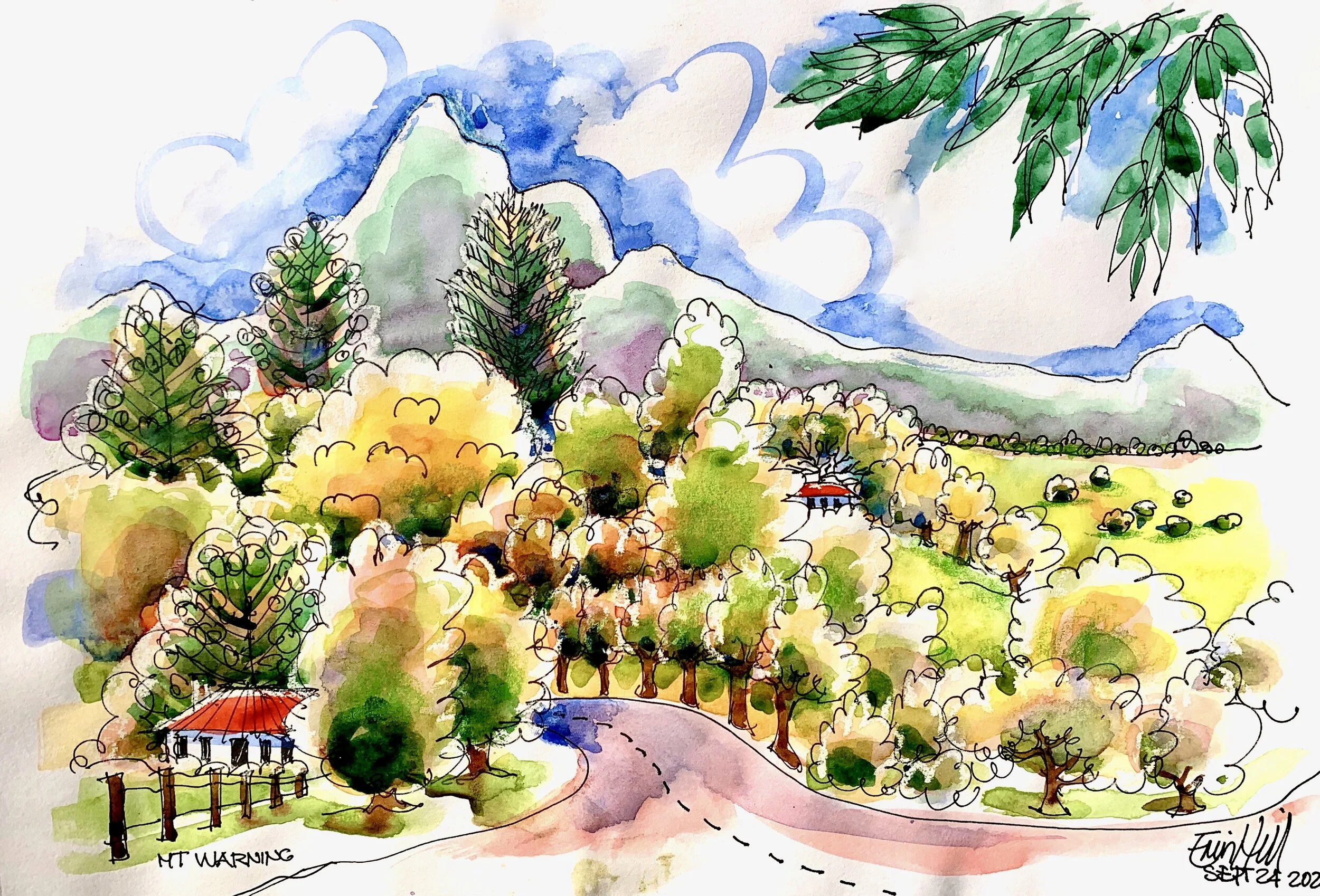 Finding the focal point is the first thing we need to find in creating a sketch. Where is our eye being lead. We often need to play up an area and give it more interest, move things about a bit even. Or it can be done with detail, texture and colour.
