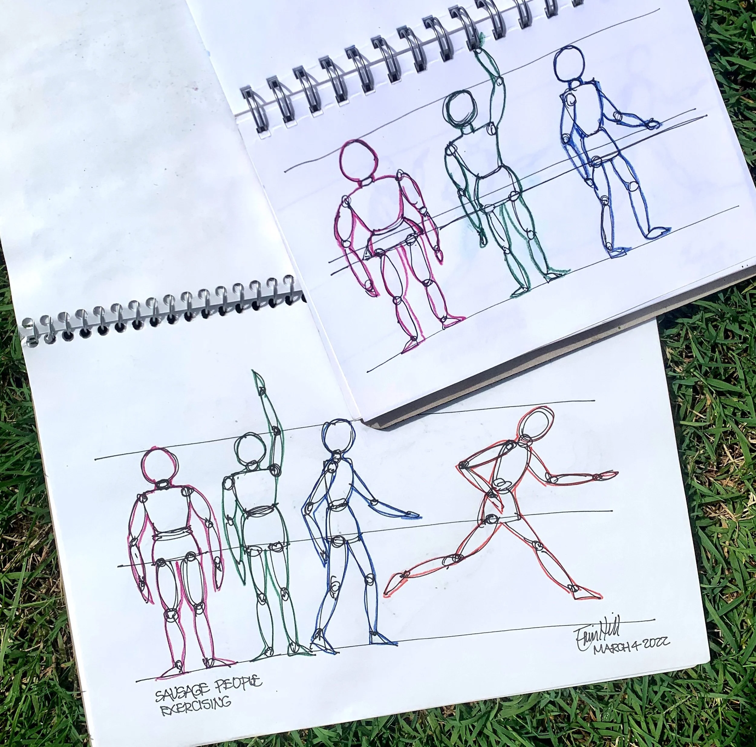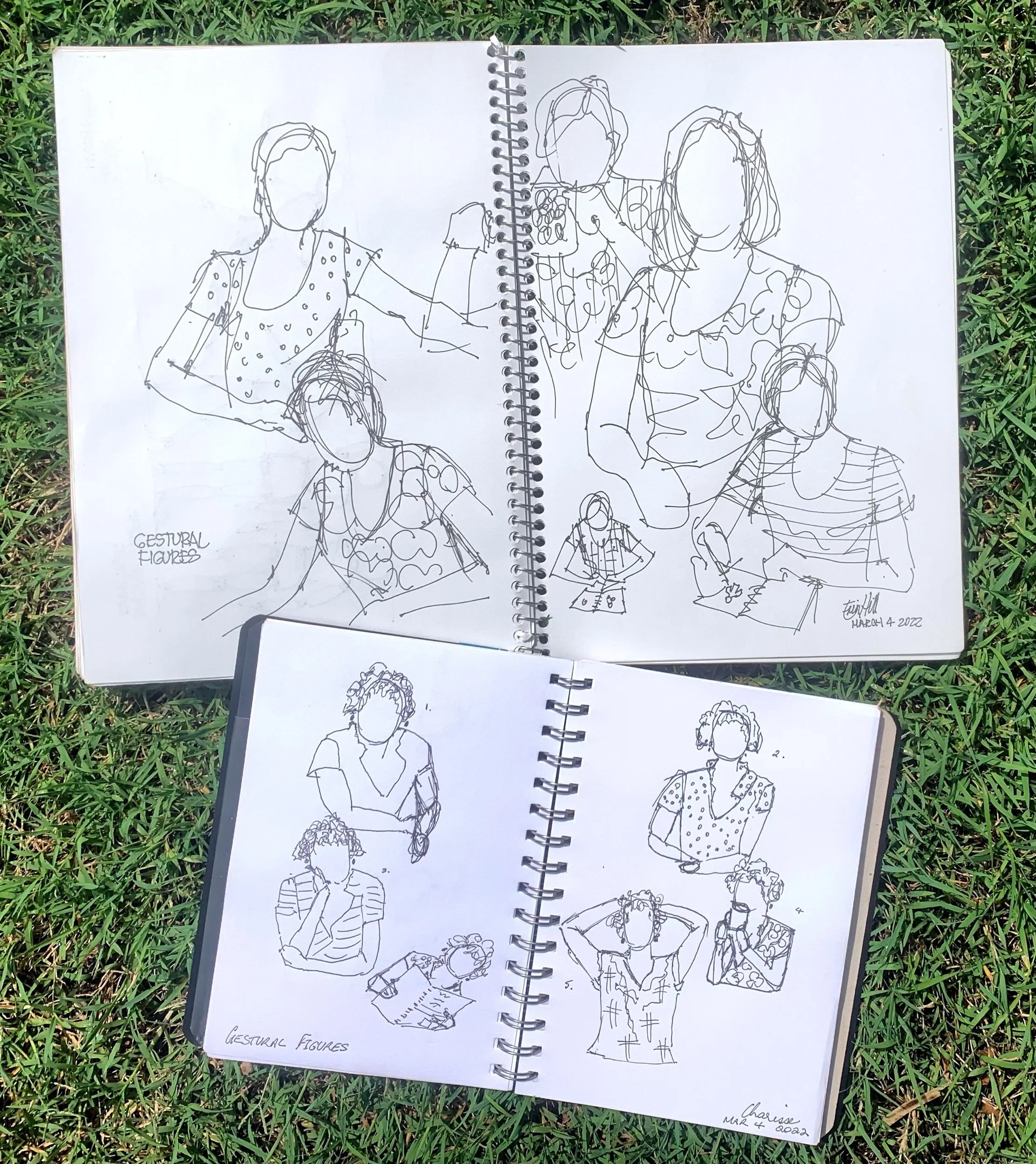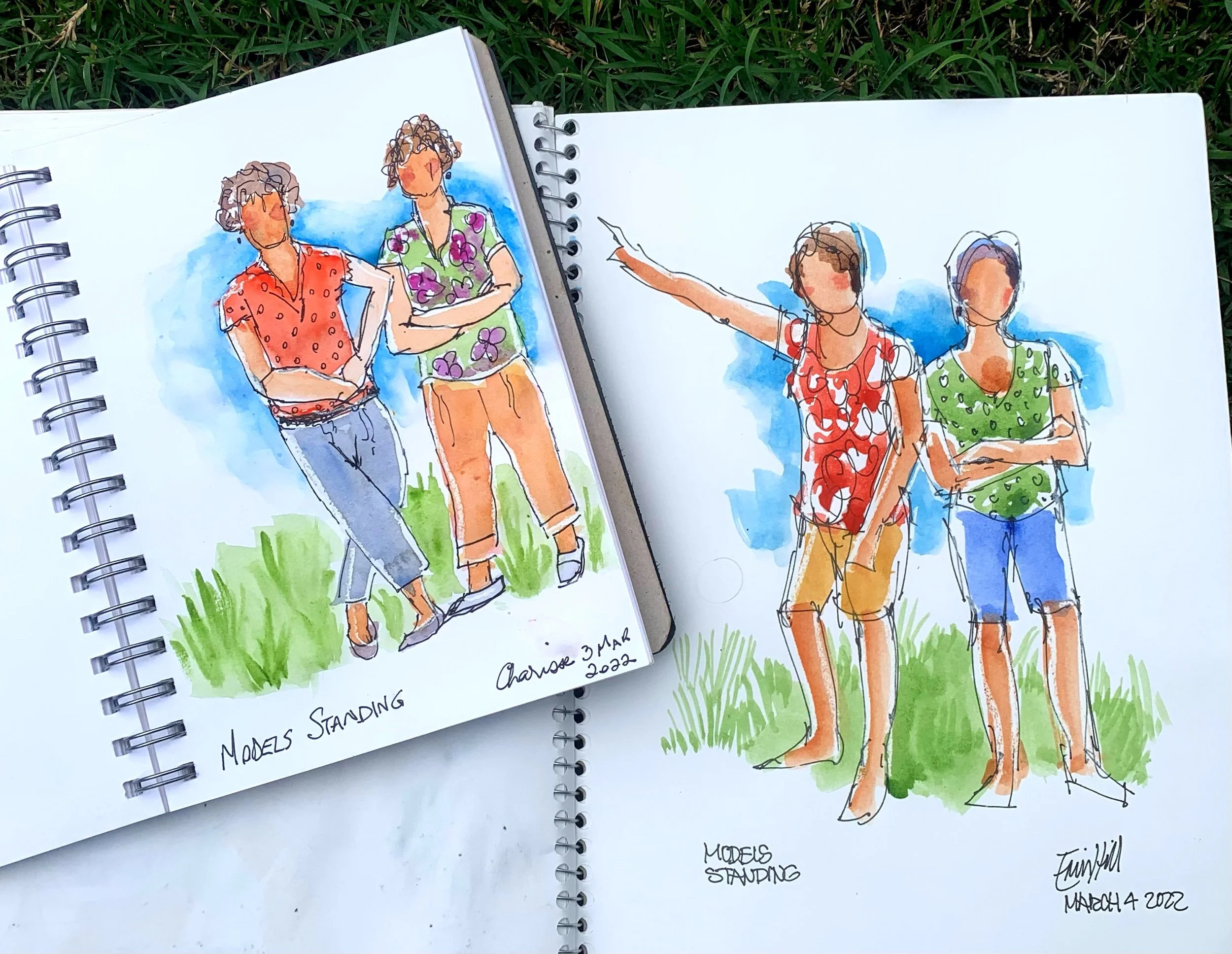 BANGALOW NSW. Week 5.Wednesday March 2nd 2022. No class due to flooding. But here are a few happy sketches we’ve done previously.