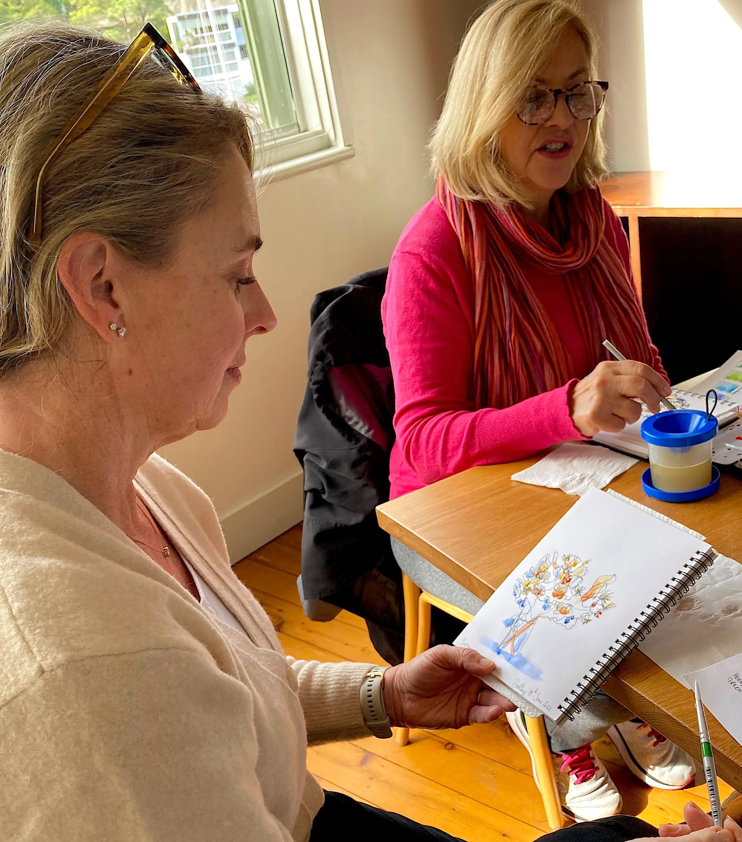 Mosman with Kirsten was Week 3 for her students. That meant learning ‘whites on tops and sides’ and how our our one colour at a time method with watercolours works. No premixing at all.