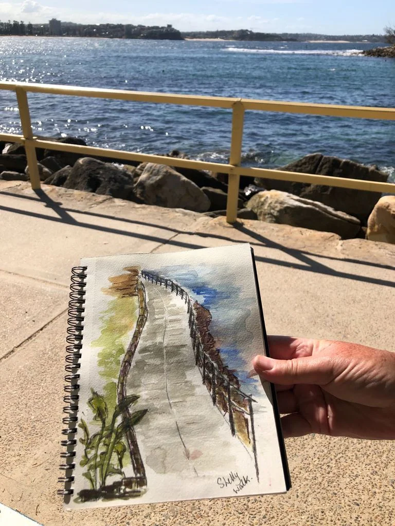Travel Sketching with Toni at Shelly Beach. Postcards from the edge.