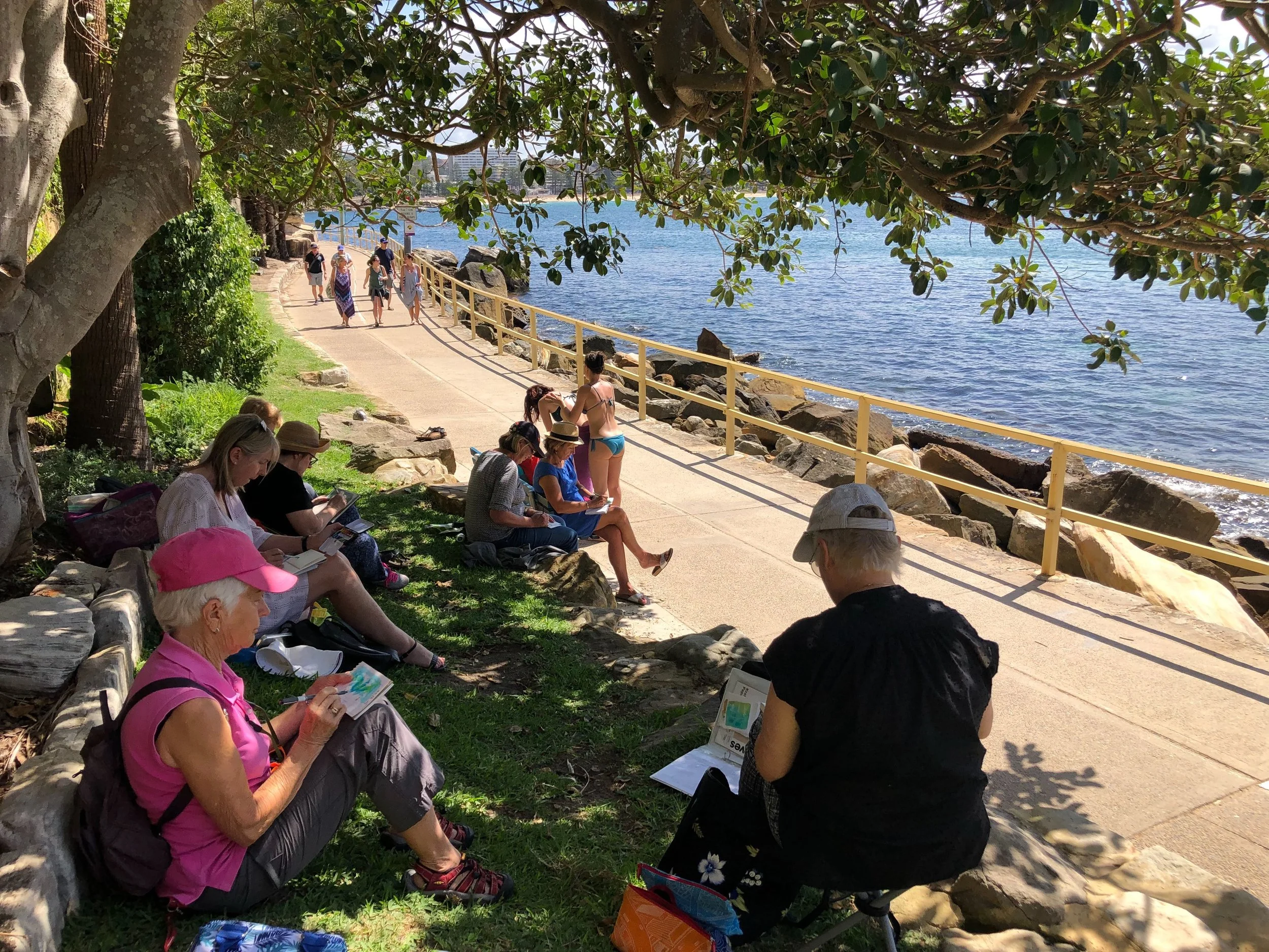 Travel Sketching with Toni at Shelly Beach Manly. Postcards from the beach