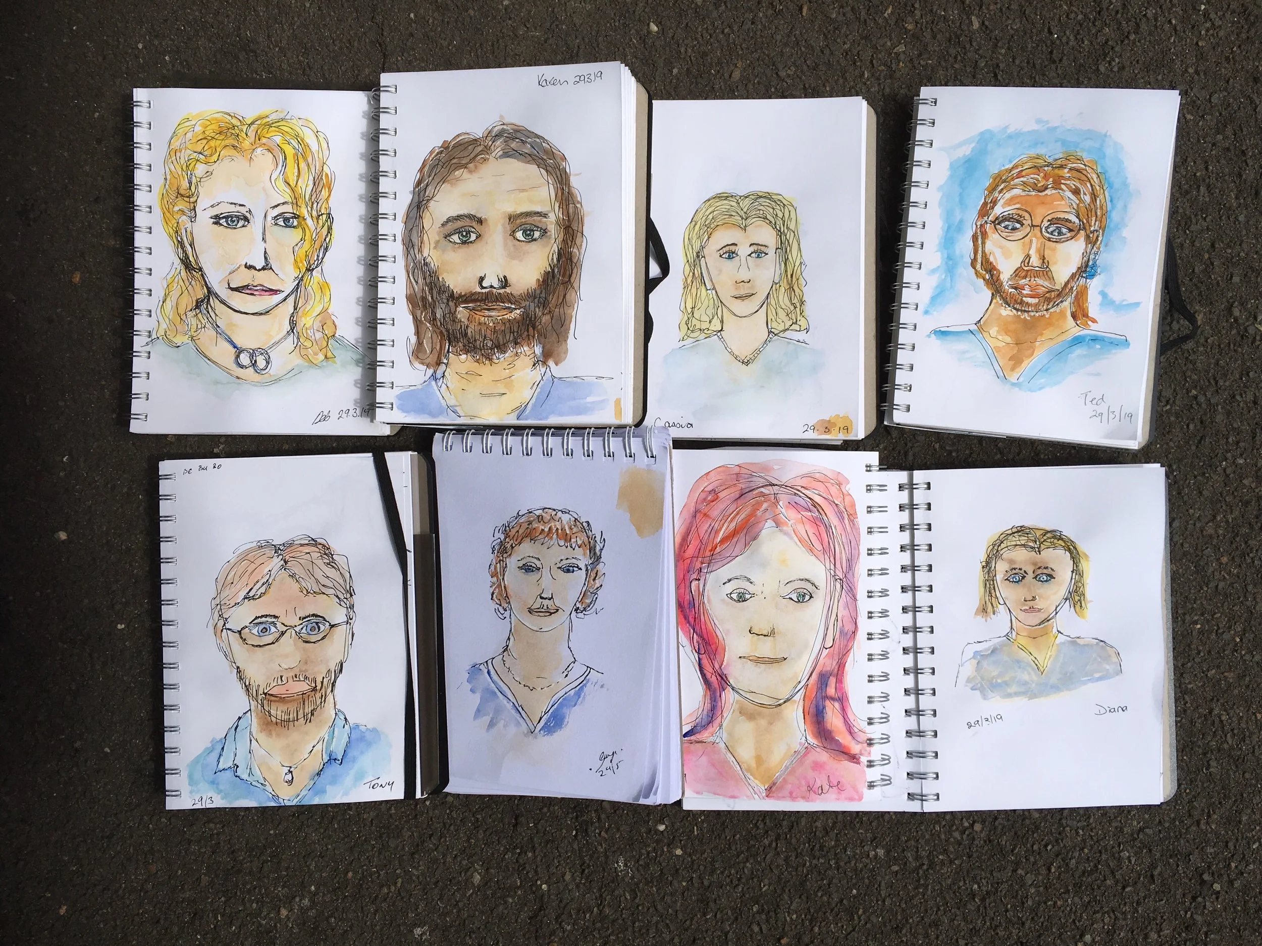 Sketch and Walk with EHS and Urban Sketchers. Self portraits and first watercolour trees.