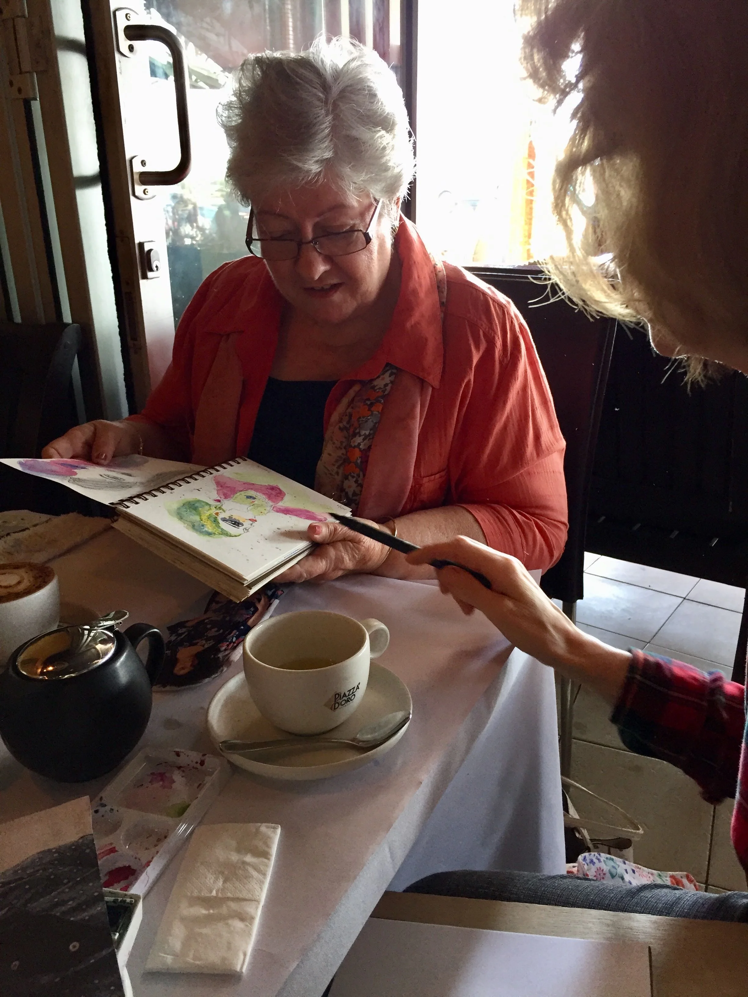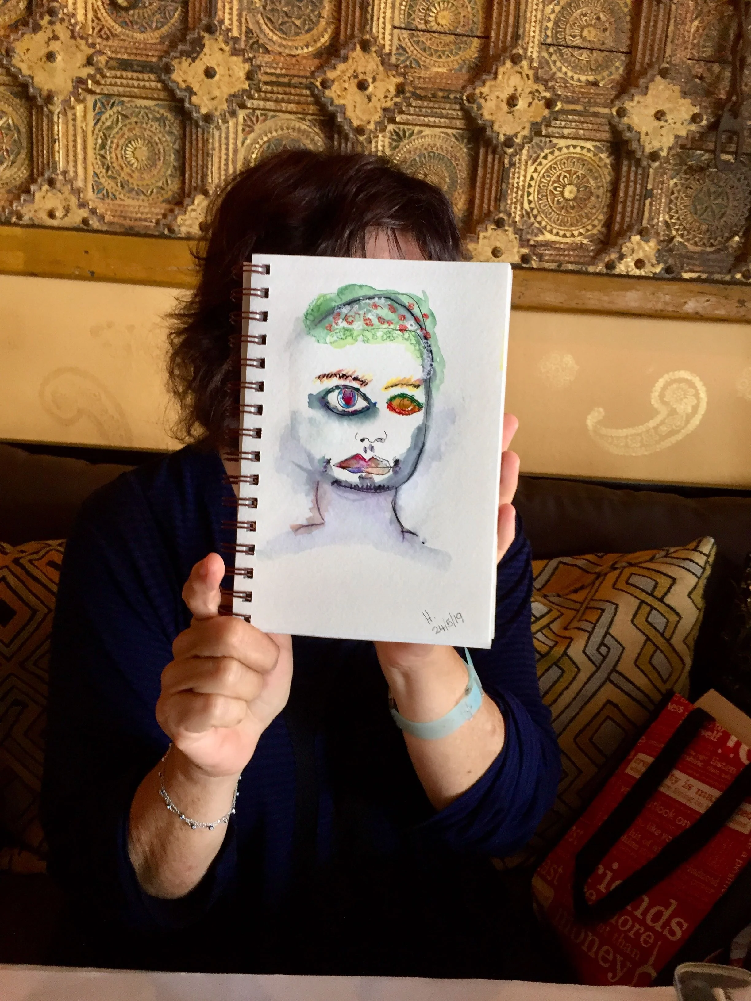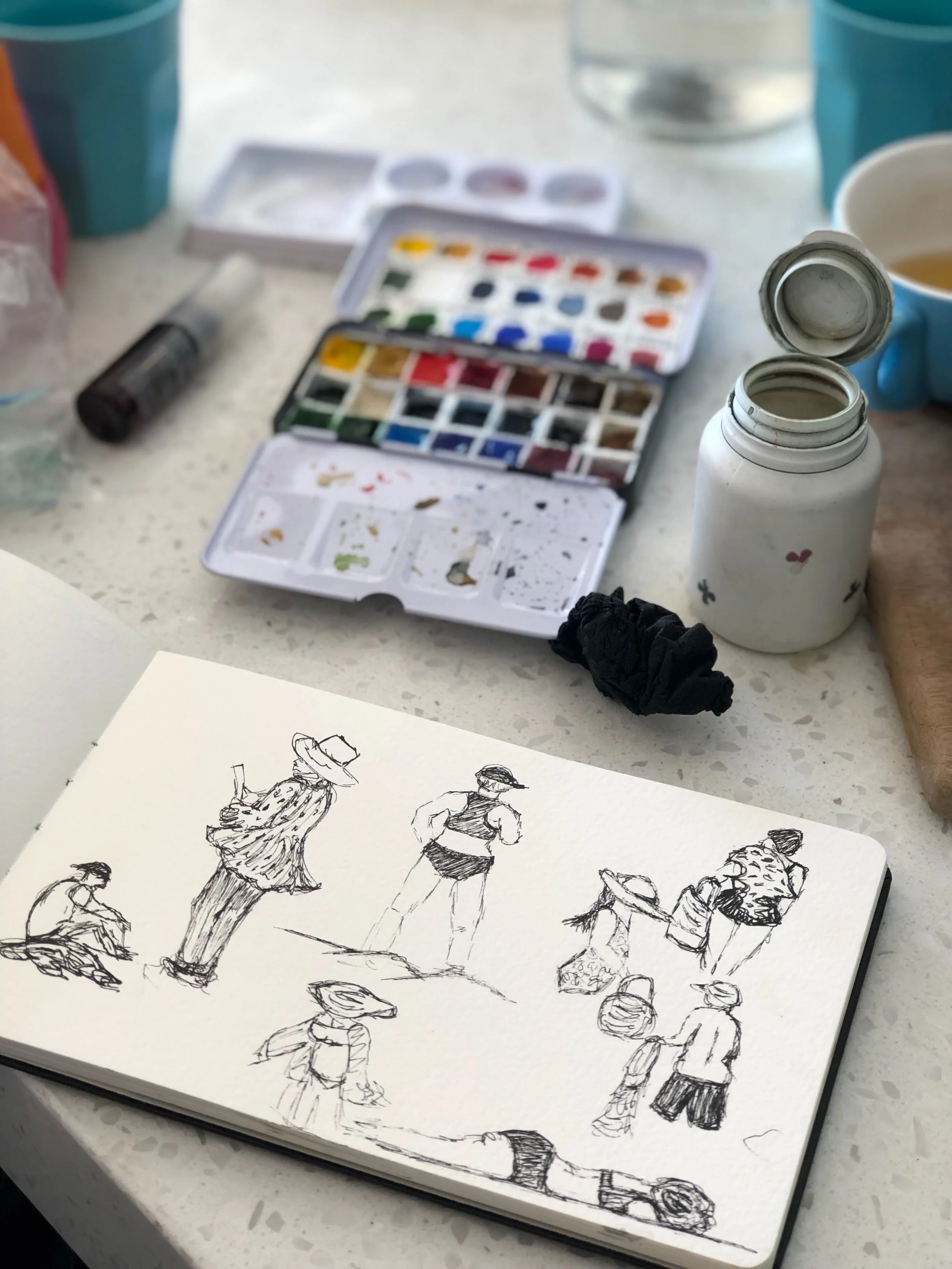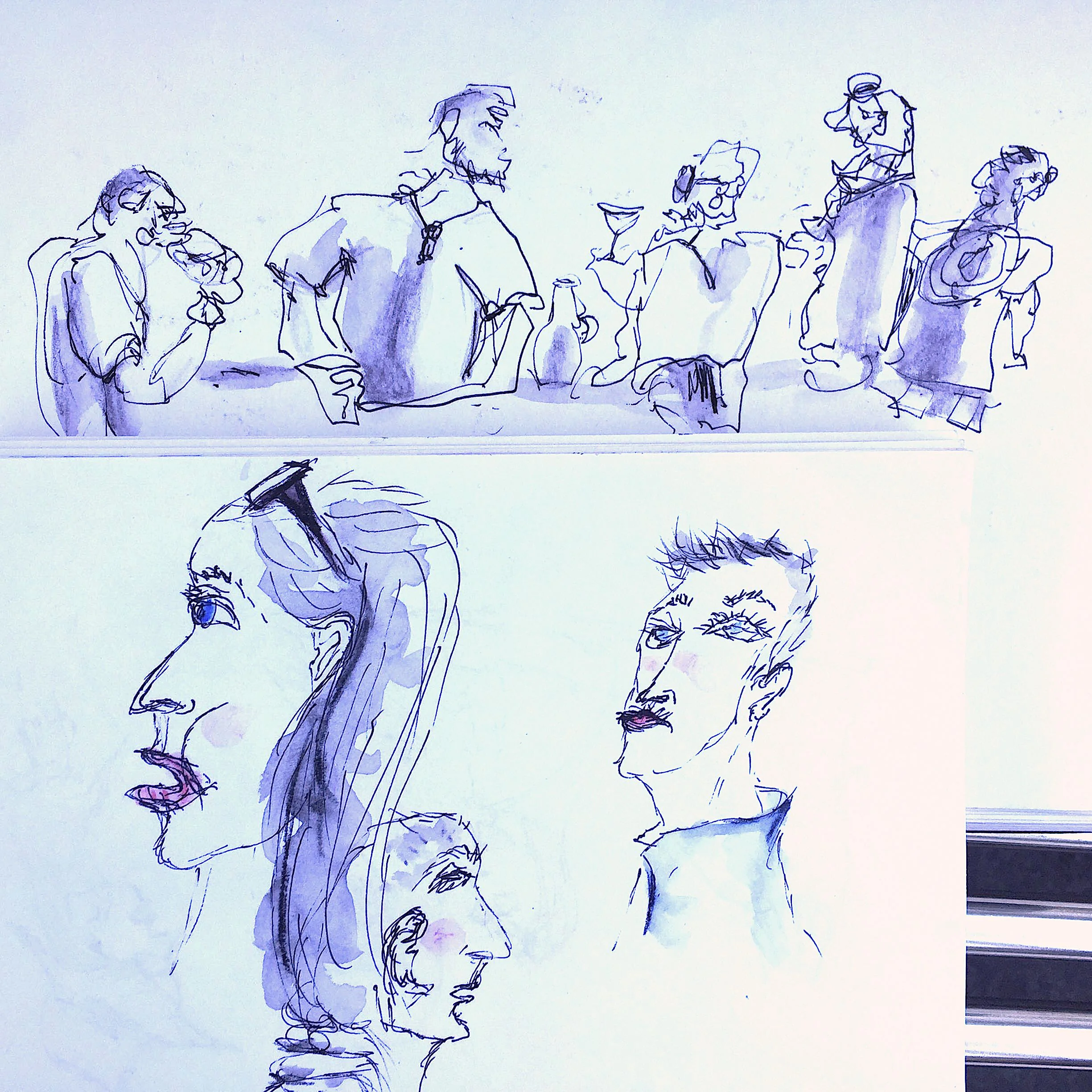 Taste of Manly today. 40,000 festival goers. Loads of sketching with limited colour added. Backstage sketching musicians.