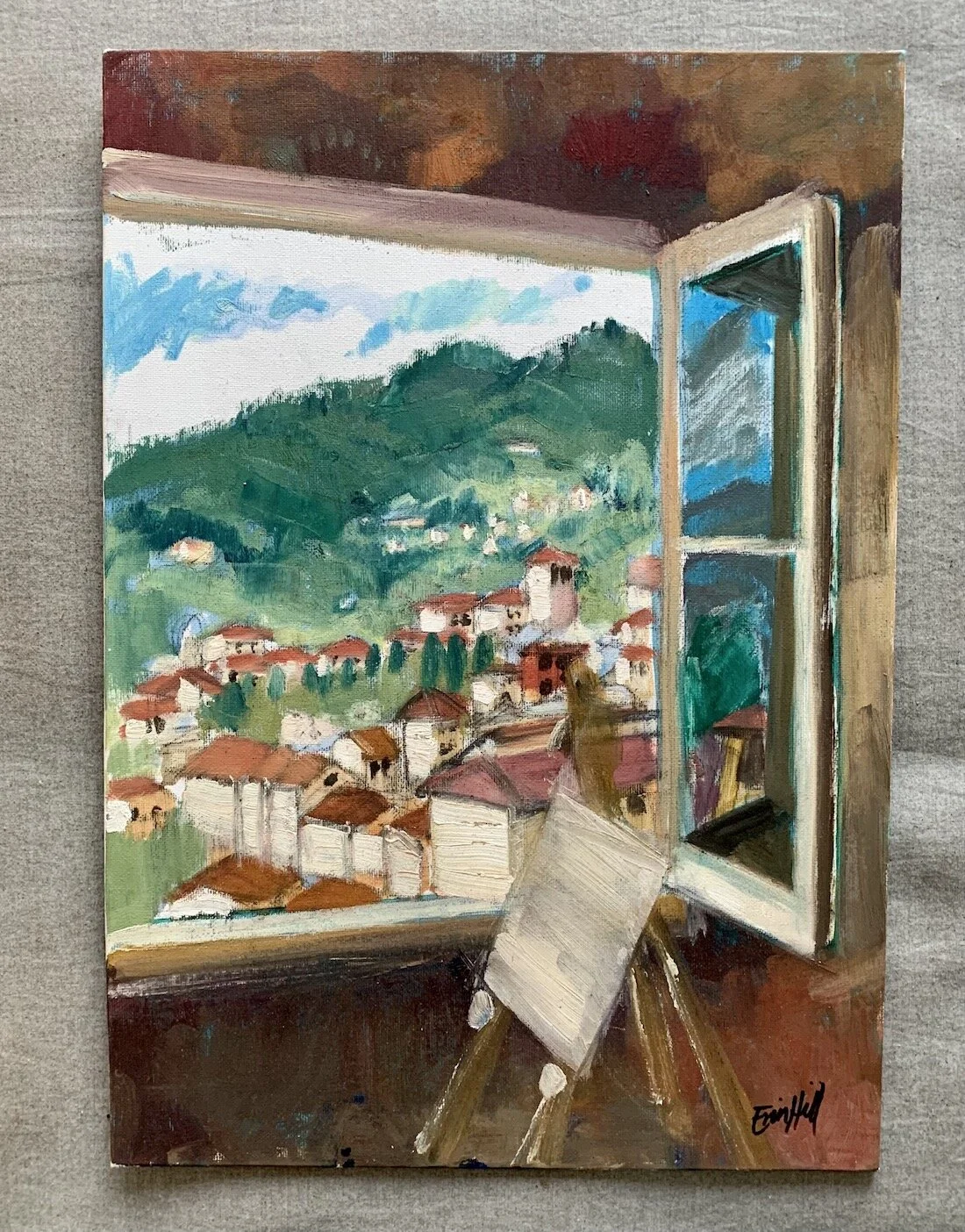 Original Painting. Oil on board. Another version of ‘View over Barga.’ 30cm x 42cm. AU$295