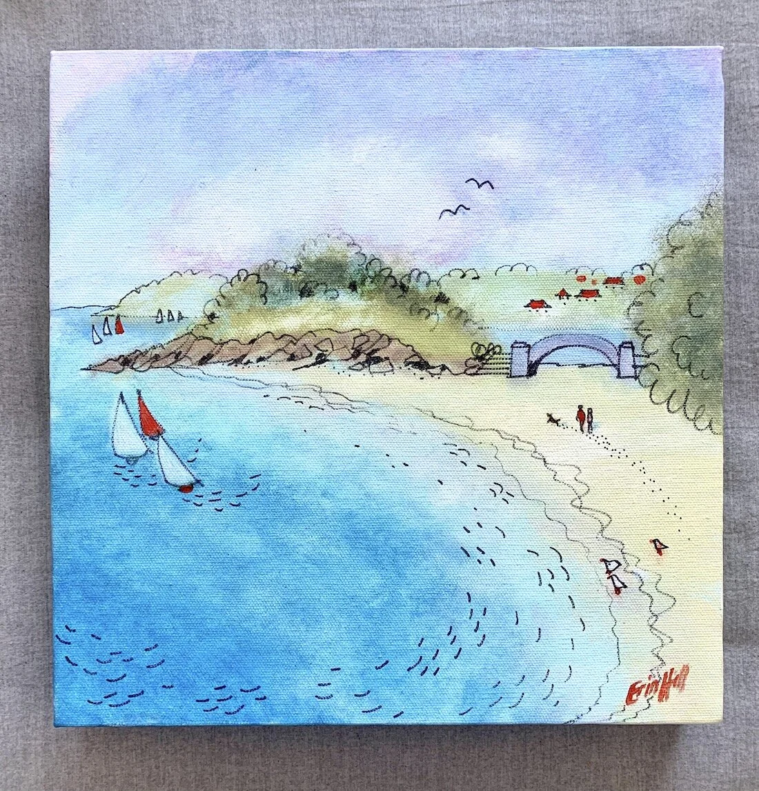 Original Acrylic and Line on canvas. ‘Balmoral Beach’. 2011. 30cm x 30cm x 4cm. AU $155