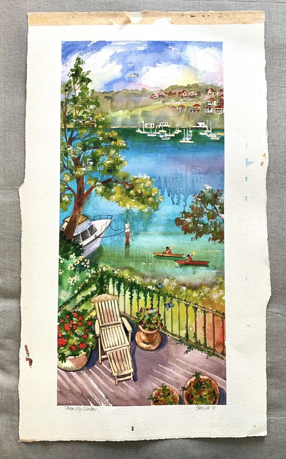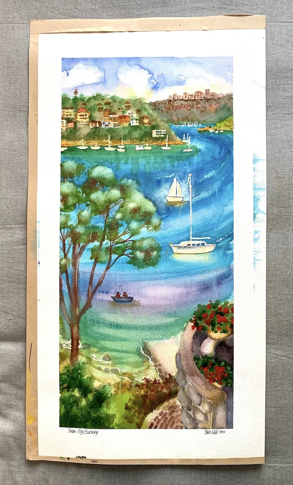 Original Watercolour. One of a pair. ‘From my Balcony’ Seaforth, Sydney. Image 65cm x 30cm. 2001. AU$225ea