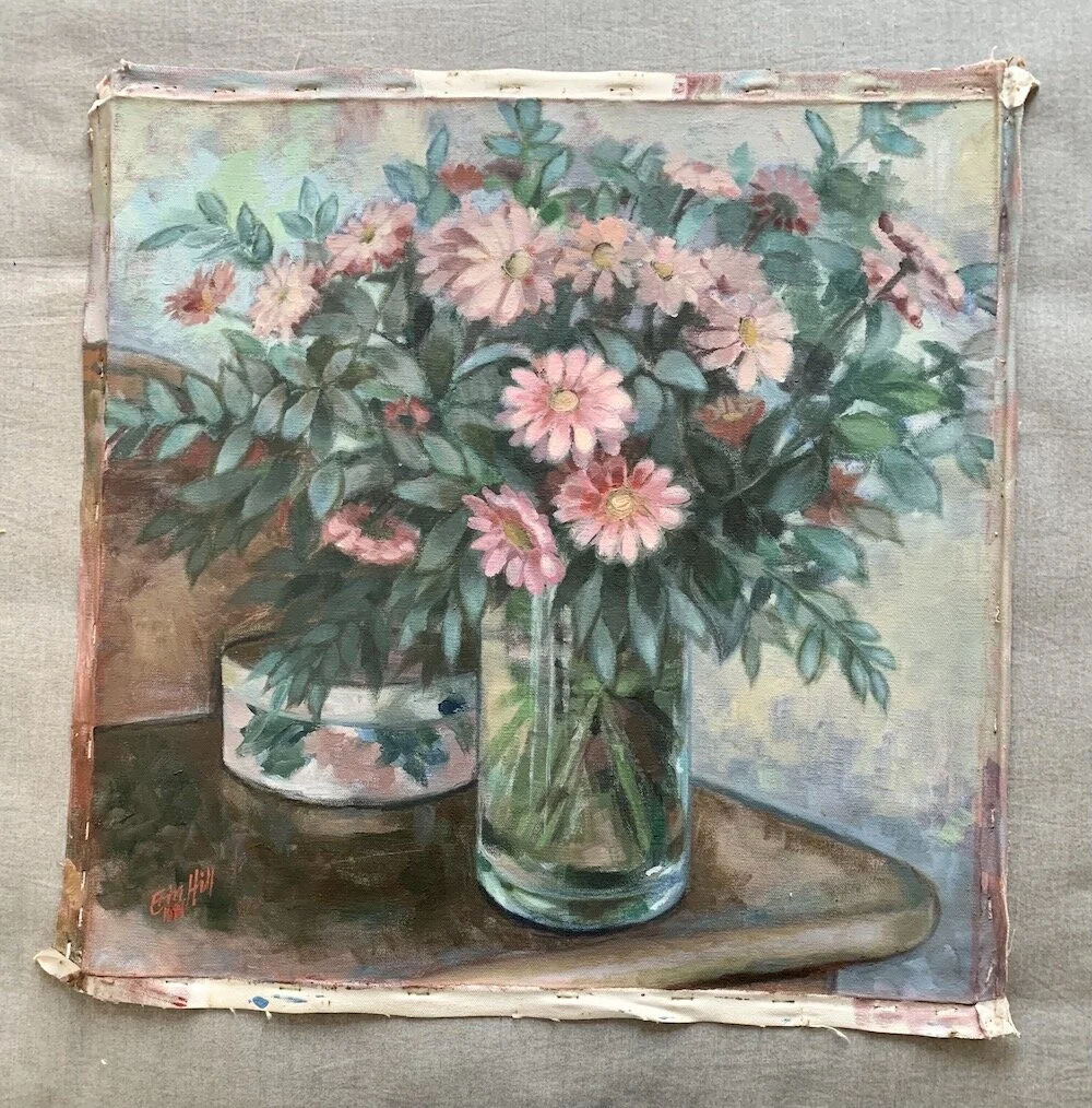 Original Oil on canvas.’Pink Daisies’ 50cm x 50cm. 1991. AUS350 SOLD