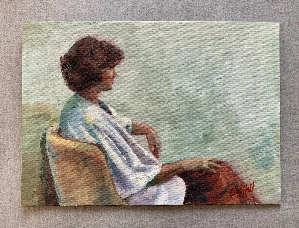 Original Oil on board.’ Model in a chair’ 35cm x 25cm. 1985. AU$125