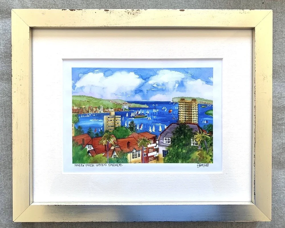 Framed print. ‘Manly from Woods Pde’. One of a set of 3. 2004. Frame needs retouching. Print: 10cm x 15cm. Frame: 24cm x 29cm. AU$95ea