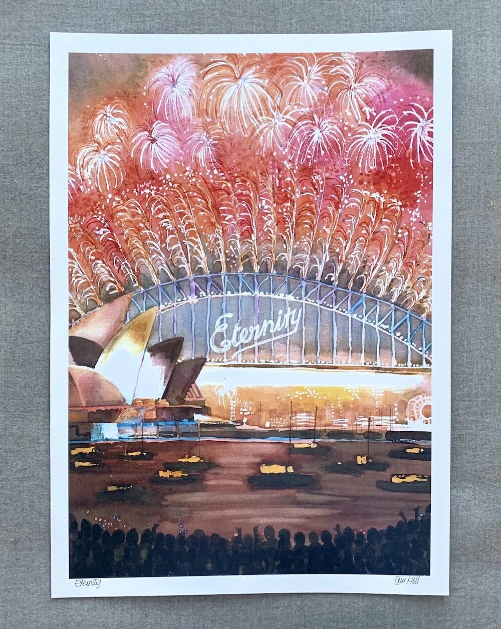PRINT. ‘Eternity’ 1999. One of 3 New Year’s Eve Fireworks images. 27cm x 39cm. AU$95