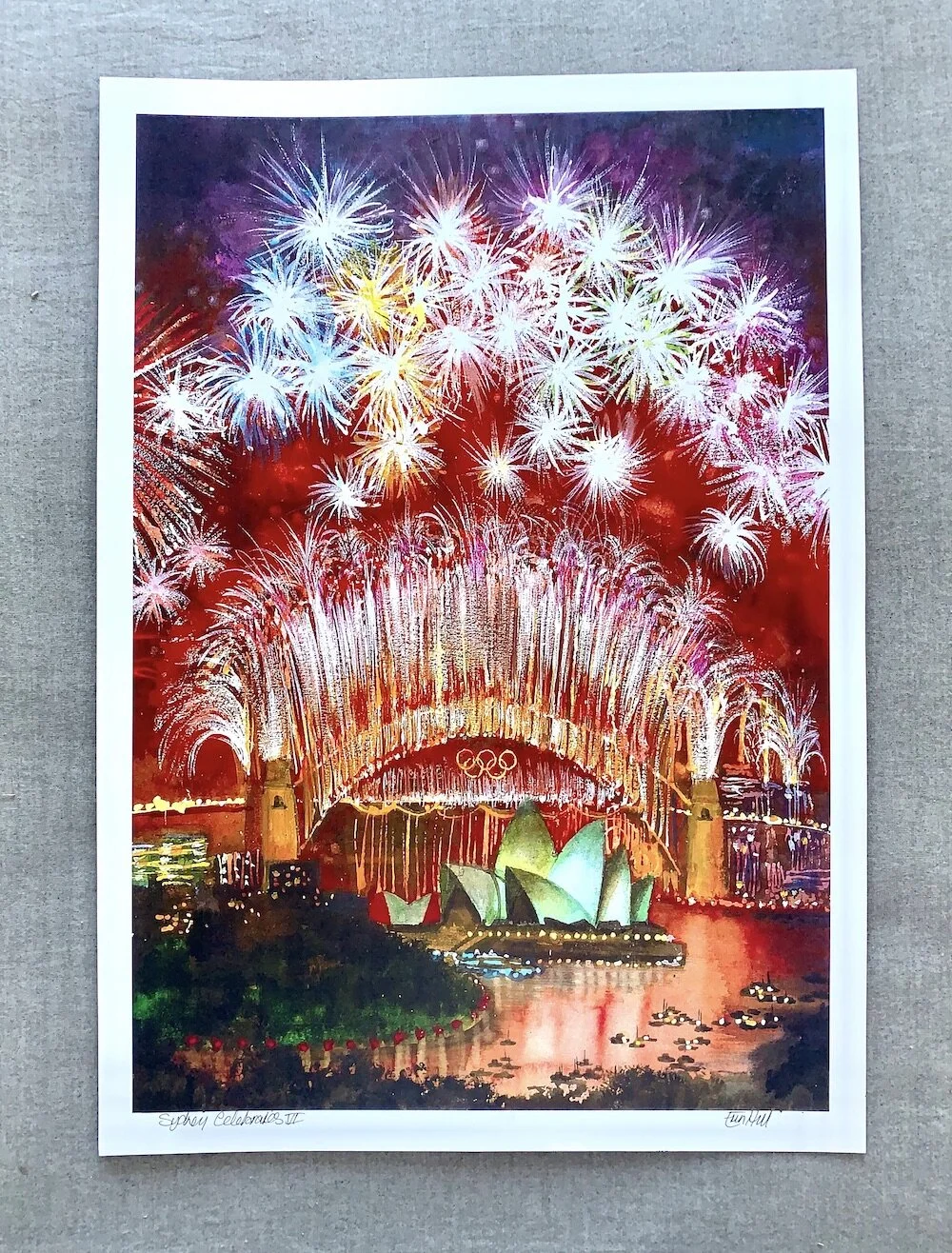 PRINT. "‘Sydney Celebrates 2000’ The Olympic year. One of 3 New Year’s Eve Fireworks images. 27cm x 39cm. AU$95